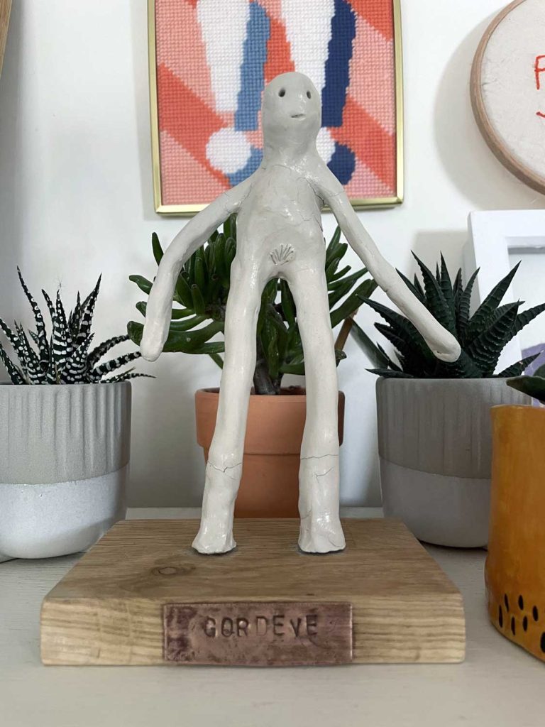 Unfired clay and random accessories. Wipe clean only.